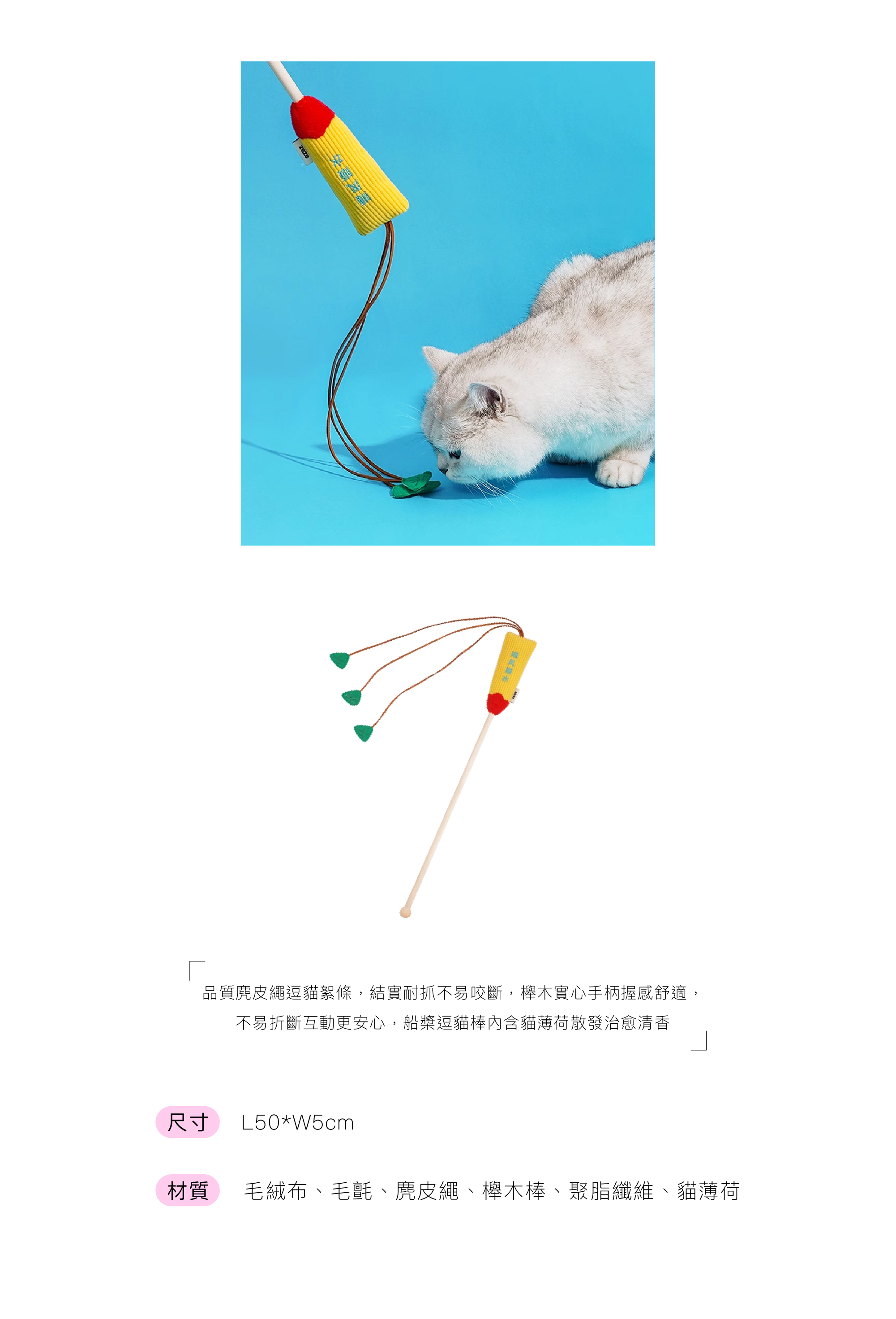 端午佳節,與貓“粽”享趣味互動時光,品質麂皮繩逗貓絮條,結實耐抓不易咬斷,樣木實心手柄握感舒適,不易折斷互動更安心,船槳逗貓棒內含貓薄荷散發治愈清香