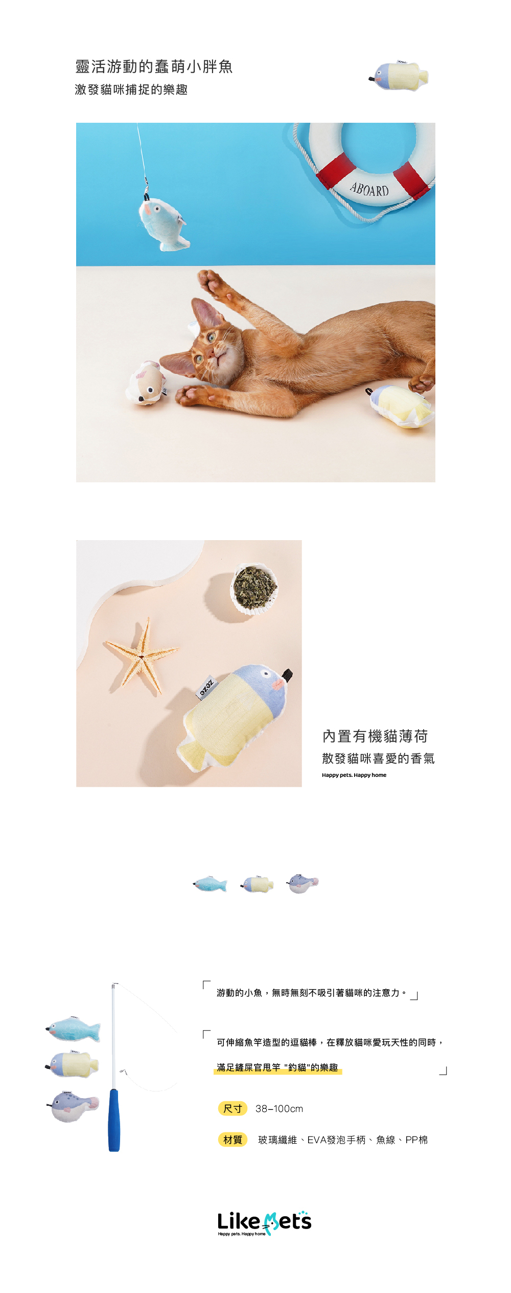 靈活游動的蠢萌小胖魚,造型可愛清新,激發貓咪捕捉的樂趣