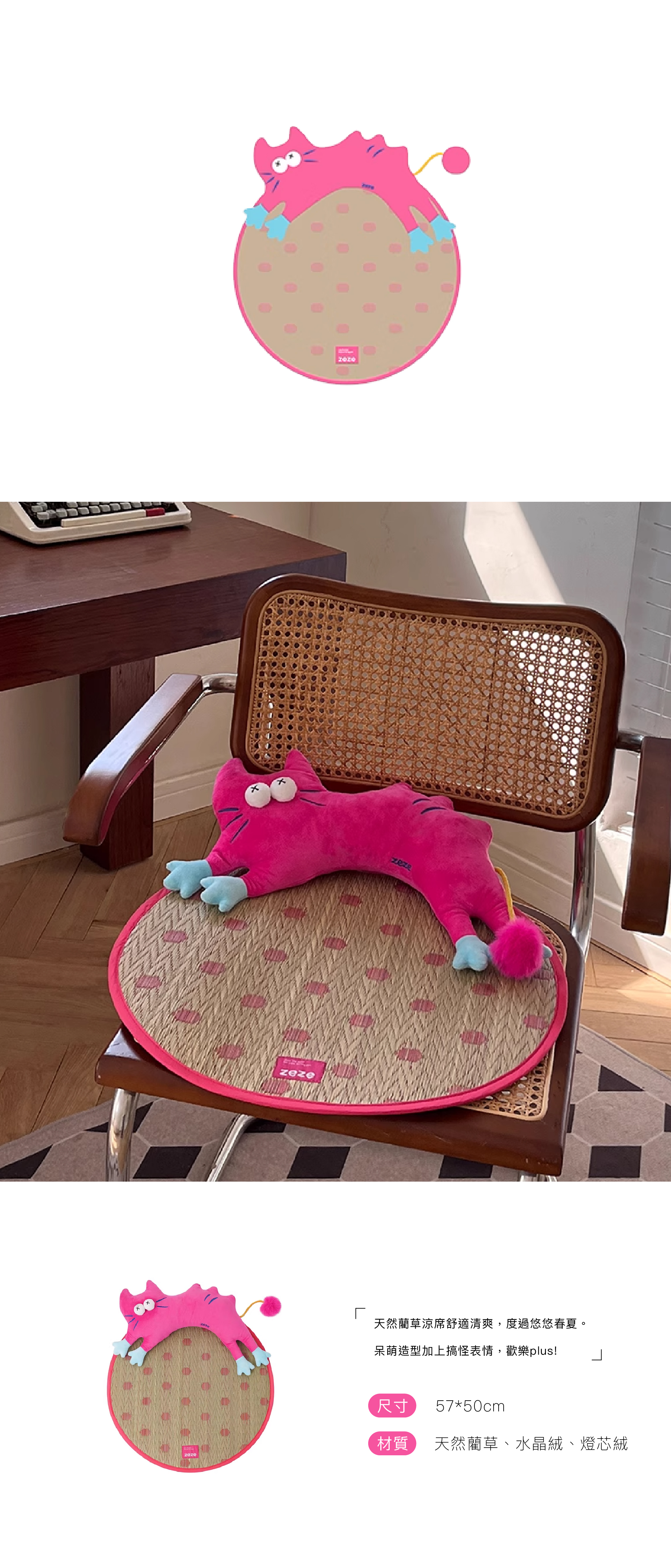 -材質:天然藺草、水晶絨、燈芯絨