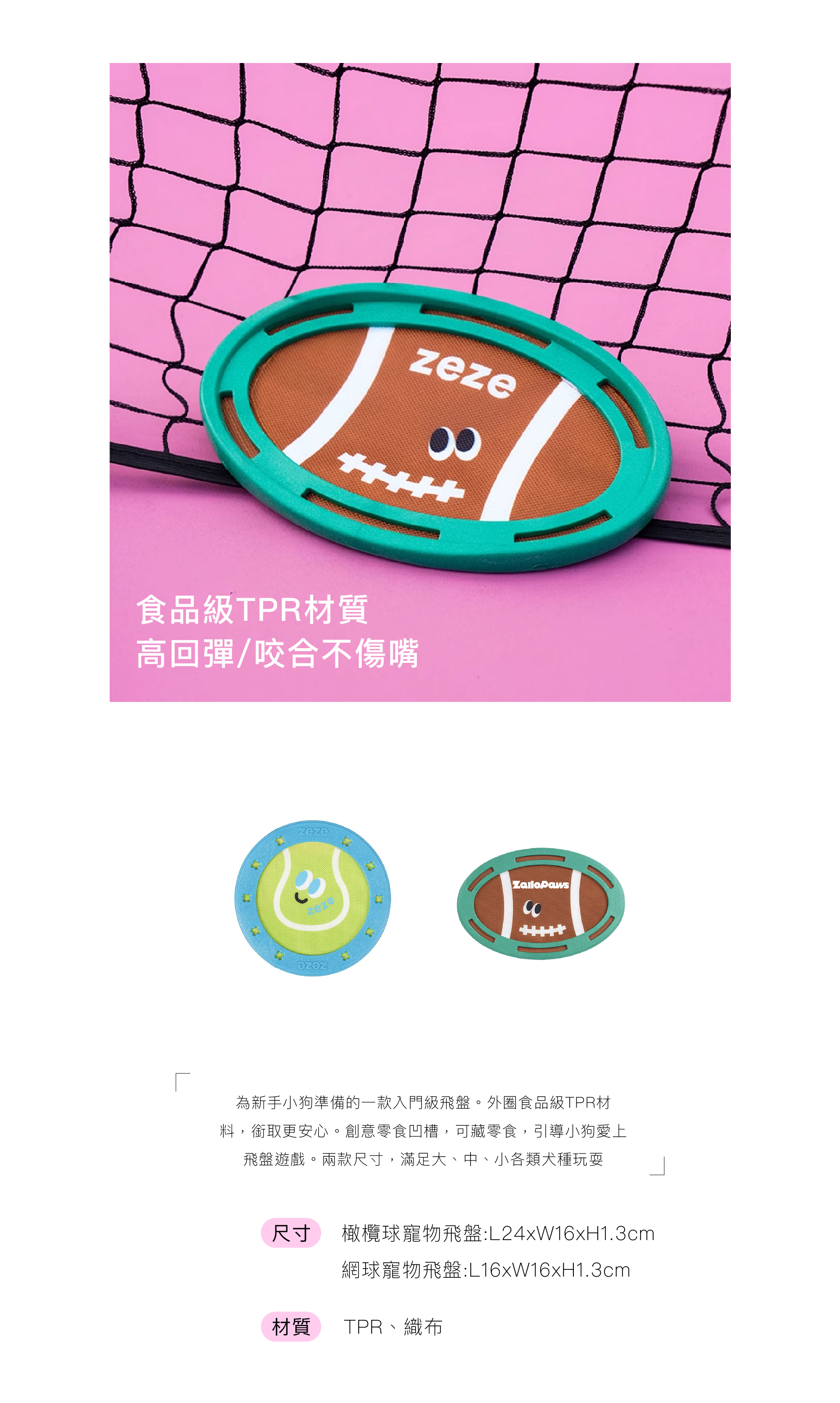 為新手小狗準備的一款入門級飛盤。外圈食品級TPR材料,銜取更安心。創意零食凹槽,可藏零食,引導小狗愛上飛盤遊戲。兩款尺寸,滿足大、中、小各類犬種玩耍