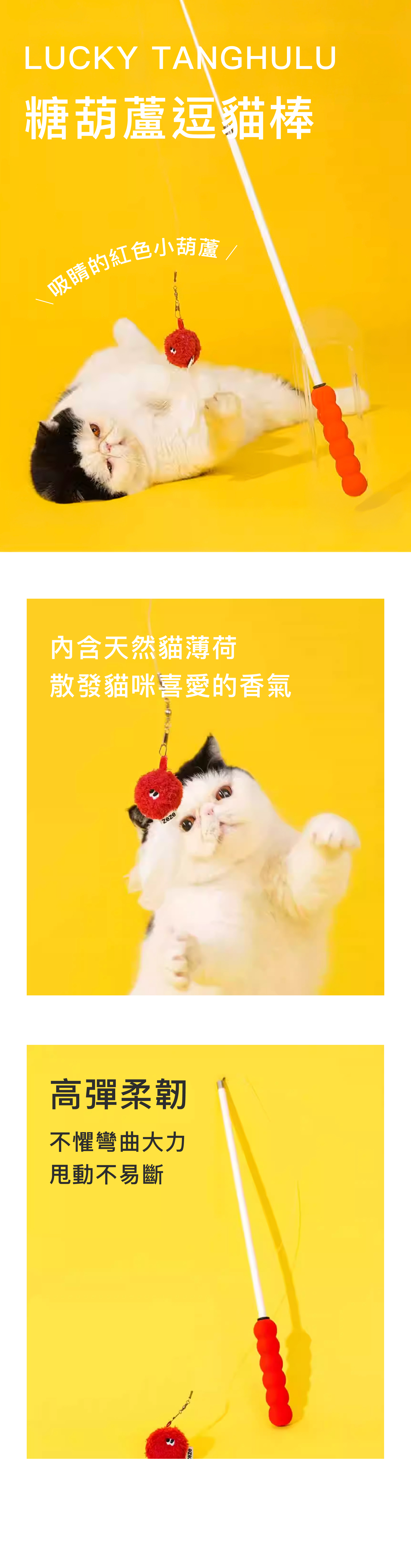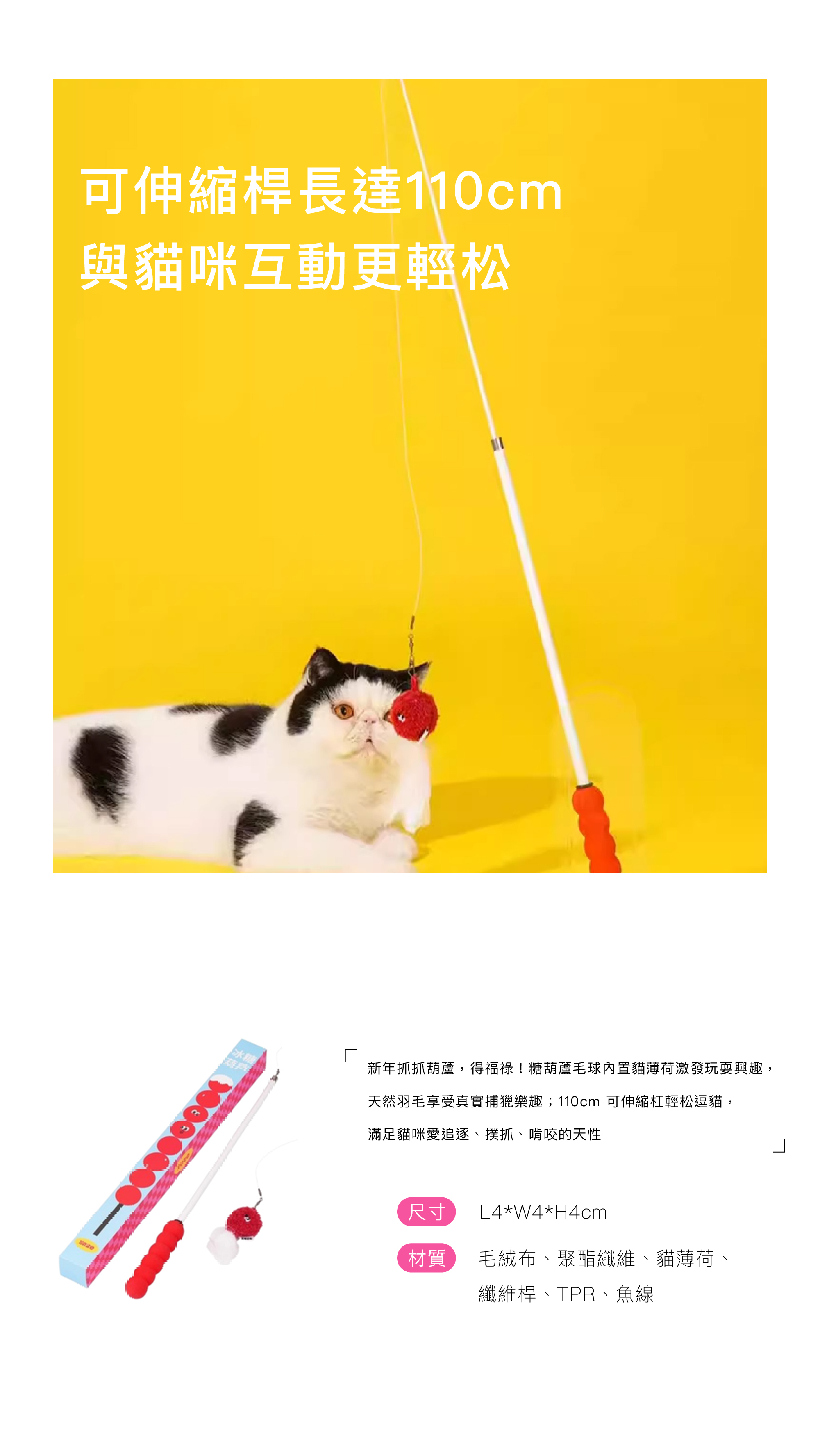 抓抓葫蘆,得福祿!糖葫蘆毛球內置貓薄荷激發玩耍興趣,天然羽毛享受真實捕獵樂趣110cm可伸縮輕鬆逗貓,滿足貓咪愛追逐、撲抓、啃咬的天性