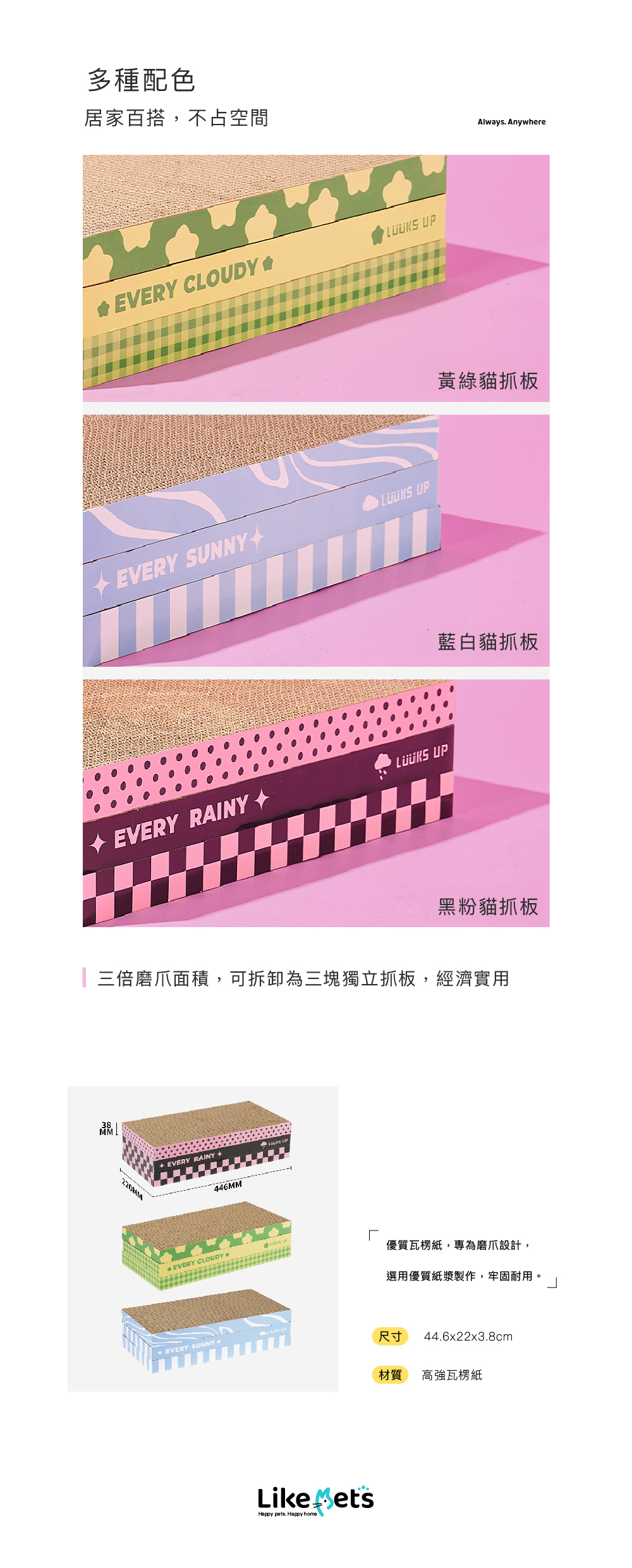 三倍磨爪面積,可拆卸為三塊獨立抓板,經濟實用