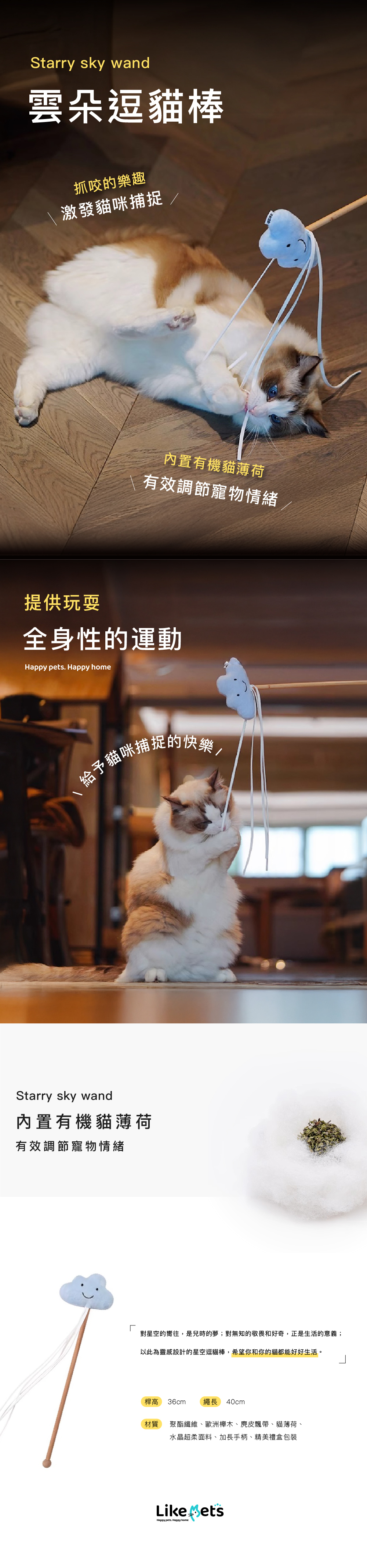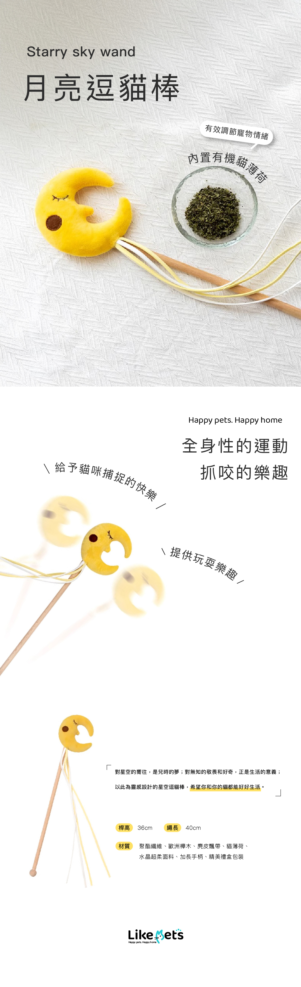 .材質:聚酯纖維、歐洲櫸木、麂皮飄帶、貓薄荷、水晶超柔面料、加長手柄