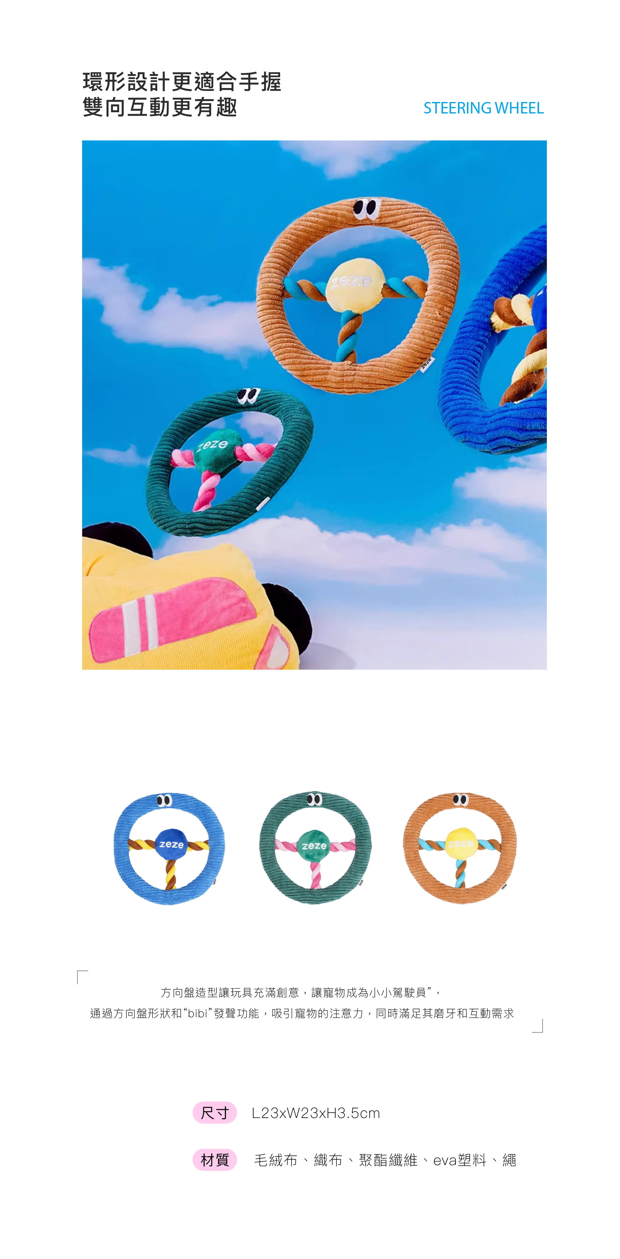方向盤造型讓玩具充滿創意,讓寵物成為小小“駕駛員”,通過方向盤形狀和“bibi”發聲功能,吸引寵物的注意力,同時滿足其磨牙和互動需求