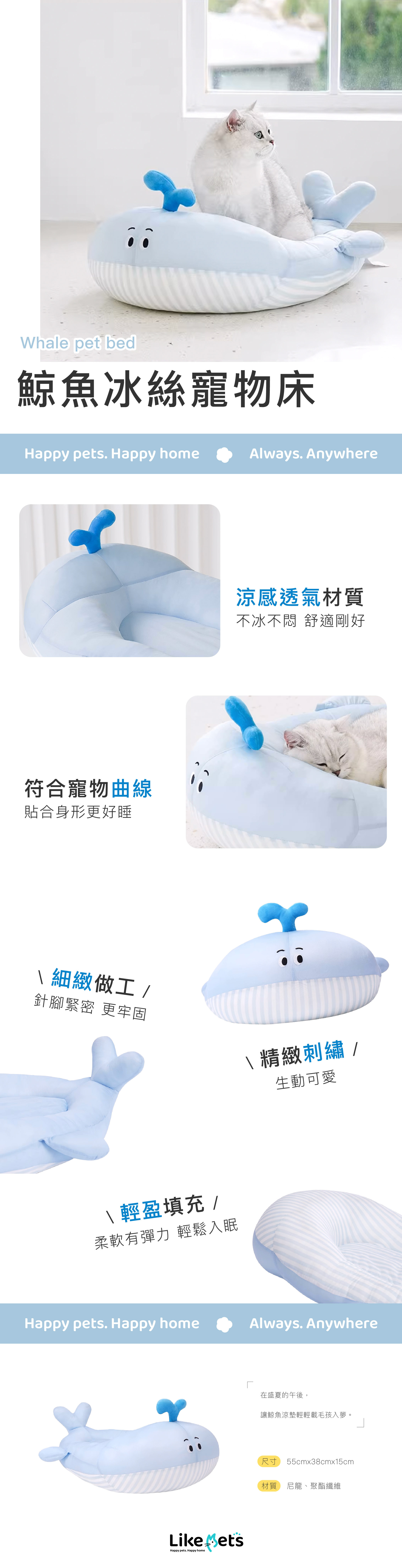 ·品質填充,手感柔軟親膚,讓貓咪睡得更加舒適,和鯨魚一起過夏天。